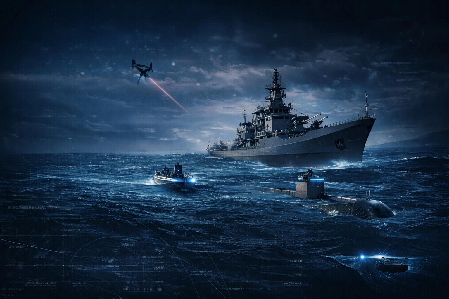 We operate at the intersection of advanced engineering, artificial intelligence, naval systems, and